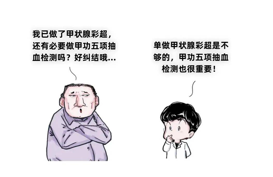 其实啊,体检时只做甲状腺彩超是不够的,彩超往往看的是甲状腺的结构,而甲功抽血检测看的是甲状腺分泌的激素是否正常!