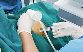 甲状腺微波消融术,是目前临床普外科用于治疗甲状腺(结节、腺瘤、囊腺瘤等)相关疾病比较领先的技术。其原理是在彩超定位下,将仅1毫米细针在可视状态下直接穿刺入病灶内,通过智能控制的微波加热作用,引起病灶组织发生局部凝固性坏死,彻底清除病变组织,最后坏死组织被机体吸收代谢,从而达到治疗甲状腺结节的效果。
