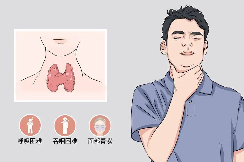 当患者伴有甲亢时,会出现心悸、多汗、手抖和消瘦等症状;伴有甲减时就会出现怕冷、全身乏力、心率减慢等症状。