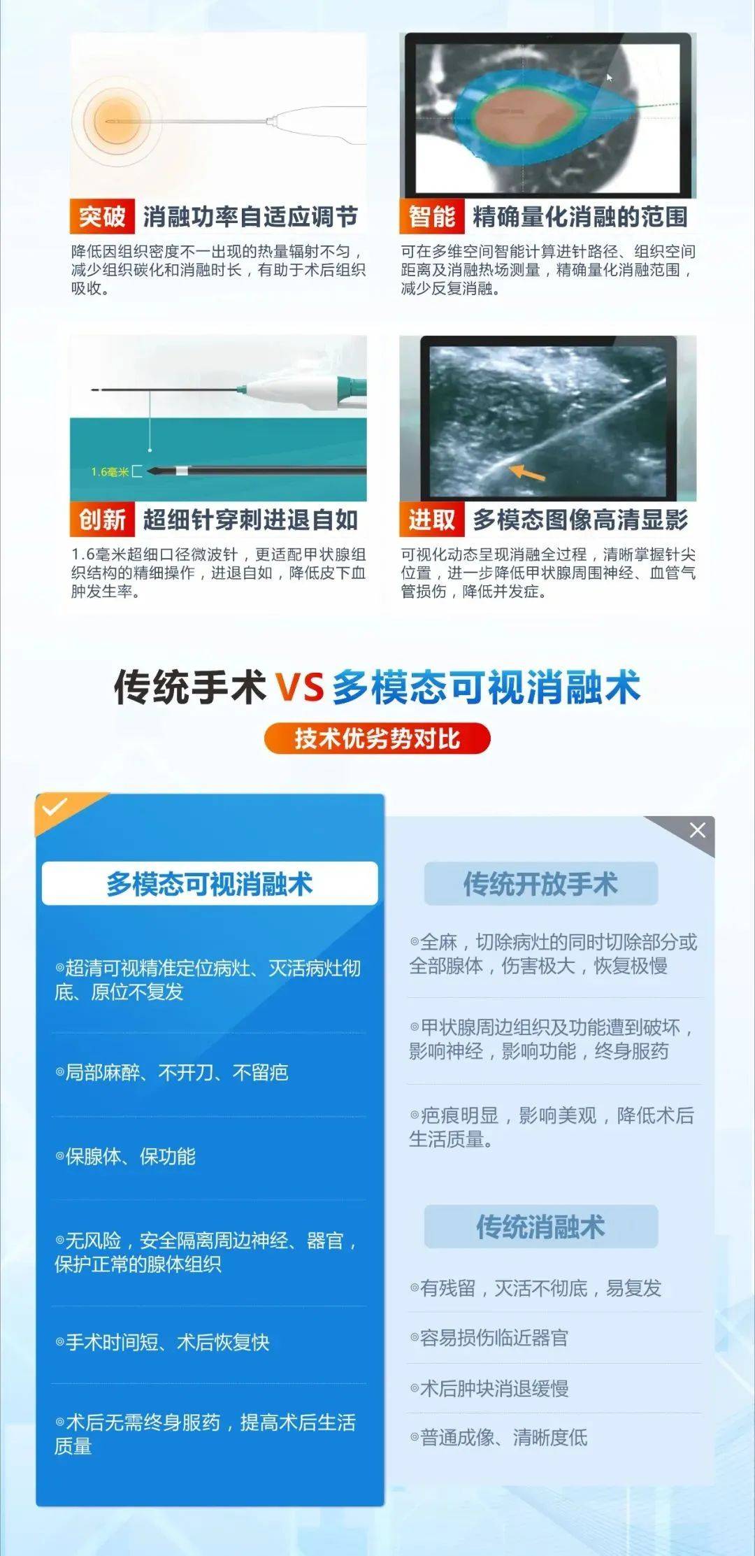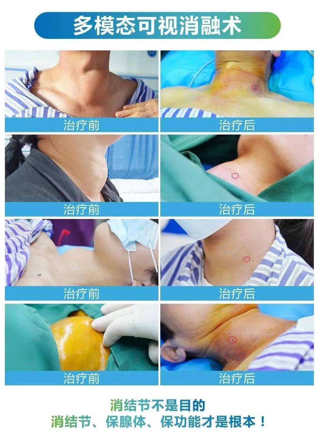 如果是良性结节病变,可以及时采取多模态可视超微消融治疗,这样就能避免结节在观察的过程中不断的长大甚至发生癌变。而且该方式具备创伤小、疗效明确、安全性高、患者恢复快的特点,同时也最大限度保留甲状腺正常组织,不影响甲状腺功能,消融后无需服药。