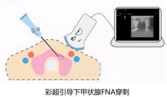 首先是进行局部麻醉,然后在超声引导下(就是“看到穿”的意思),用一根很细的针(直径不超过1mm),避开大血管、神经等重要组织,反复抽吸结节里的细胞,最后将这些细胞送到病理科的显微镜下查看到底是良性还是恶性的。